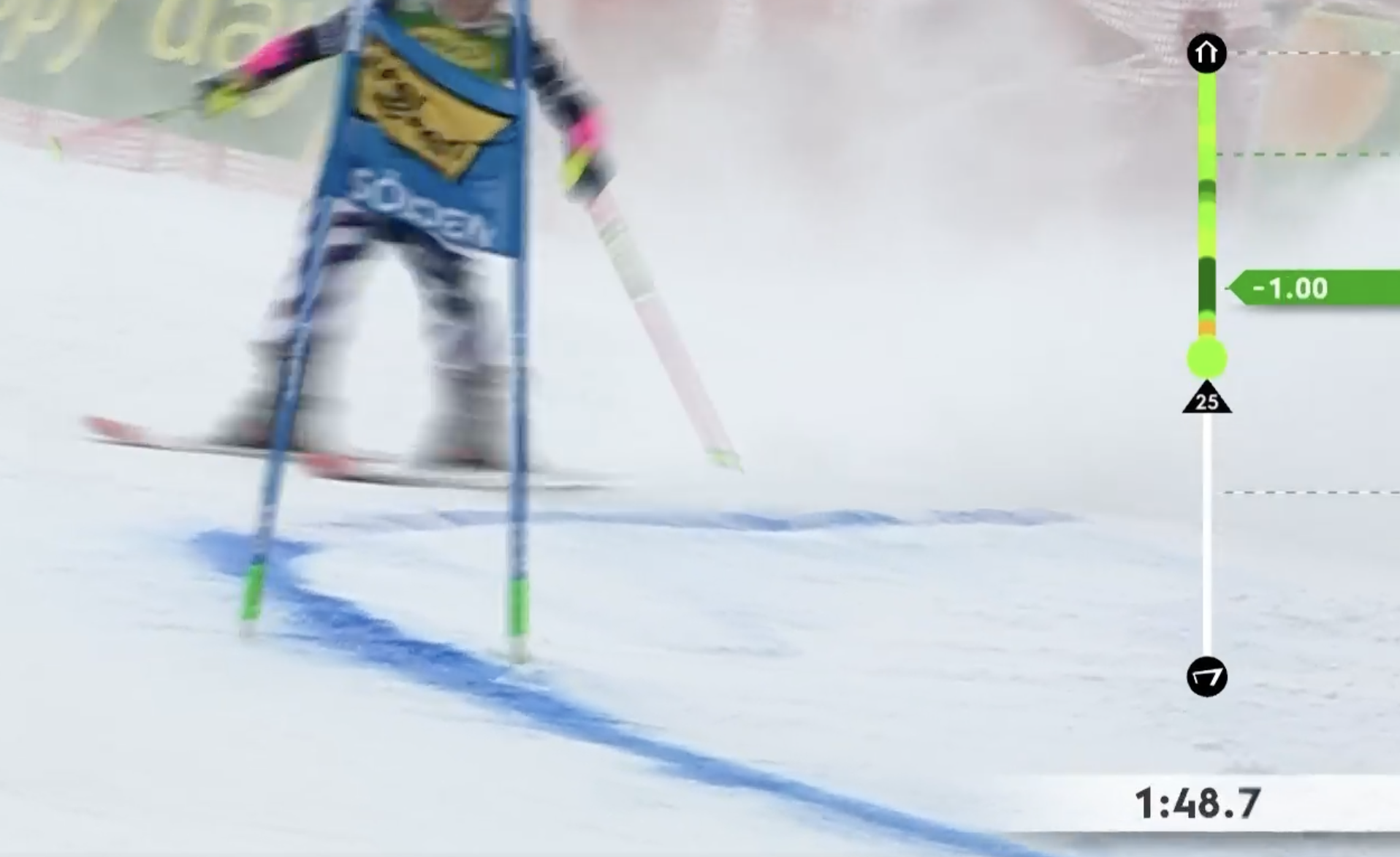- Swiss Timing: A global leader (often partnered with Swatch Group brands), Swiss Timing provides turnkey services. They offer web/live scoring and sophisticated broadcast tools. Notably, Swiss Timing’s Virtual Runner graphic displays a live side-by-side run of the current leader versus the participant, replacing the old “time-behind” indicator. They also offer live timing services at events (publishing to websites and apps).